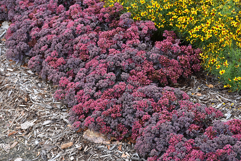 Dazzleberry Stonecrop will grow to be only 6 inches tall at maturity extending to 10 inches tall with the flowers, with a spread of 18 inches. When grown in masses or used as a bedding plant, individual plants should be spaced approximately 15 inches apart. Its foliage tends to remain low and dense right to the ground. It grows at a fast rate, and under ideal conditions can be expected to live for approximately 15 years. As an herbaceous perennial, this plant will usually die back to the crown each winter, and will regrow from the base each spring. Be careful not to disturb the crown in late winter when it may not be readily seen!