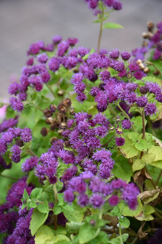 A wonderful heat tolerant, mounded series of self-cleaning, continuous reblooming plants; presents fluffy purple, button-like flowers with dark green foliage; a beautiful addition to garden beds, borders, window boxes and patio containers