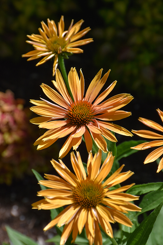 Big Kahuna Coneflower has masses of beautiful lightly-scented salmon daisy flowers with gold overtones and coppery-bronze eyes at the ends of the stems from mid summer to mid fall, which are most effective when planted in groupings. The flowers are excellent for cutting. Its pointy leaves remain green in color throughout the season.