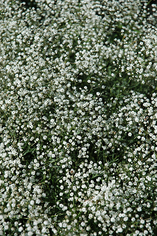 Common Baby's Breath will grow to be about 3 feet tall at maturity, with a spread of 3 feet. Its foliage tends to remain dense right to the ground, not requiring facer plants in front. It grows at a fast rate, and under ideal conditions can be expected to live for approximately 10 years. As an herbaceous perennial, this plant will usually die back to the crown each winter, and will regrow from the base each spring. Be careful not to disturb the crown in late winter when it may not be readily seen!