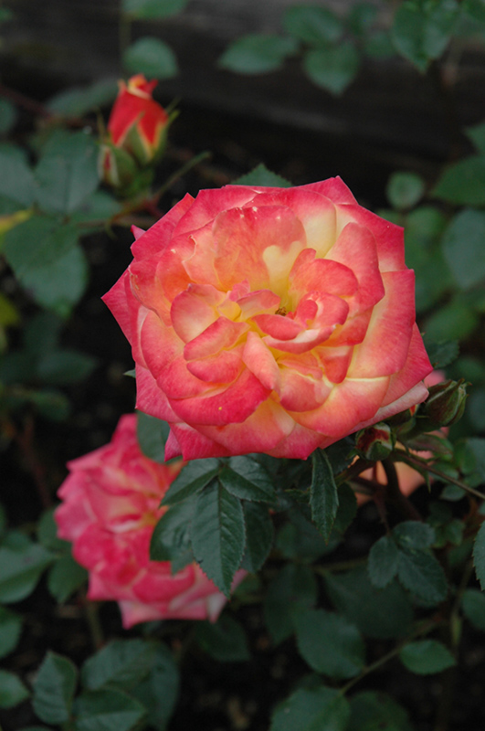 Rainbow's End Rose makes a fine choice for the outdoor landscape, but it is also well-suited for use in outdoor pots and containers. With its upright habit of growth, it is best suited for use as a 'thriller' in the 'spiller-thriller-filler' container combination; plant it near the center of the pot, surrounded by smaller plants and those that spill over the edges. It is even sizeable enough that it can be grown alone in a suitable container. Note that when grown in a container, it may not perform exactly as indicated on the tag - this is to be expected. Also note that when growing plants in outdoor containers and baskets, they may require more frequent waterings than they would in the yard or garden.