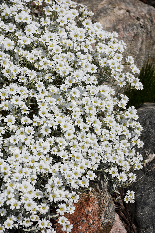 An undemanding groundcover for sun and poor soil; highly valued for its woolly gray foliage; it lives up to its name in late spring and early summer when it is absolutely smothered in luminous white flowers; more restrained compact habit than the species