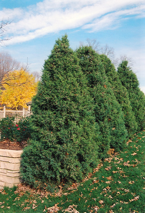 A narrow pyramidal evergreen shrub, makes a great accent or articulation plant in home landscapes, ideal as a tall hedge; interesting dusty green needle-like foliage and powdery blue berries; a very versatile landscape plant, needs full sun